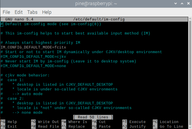 IM_CONFIG_DEFAULT_MODE를 auto에서 fcitx로 수정합니다.