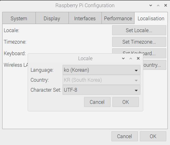 메뉴>Preferences>Raspberry Pi Configuration>Localisation