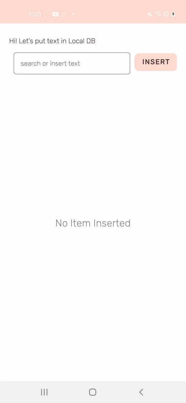 위 그림 처럼 Room Local DB에 text와 저장 시간을 저장하고, 뷰로 불러오고, 삭제, 검색 기능까지 구현하였습니다.