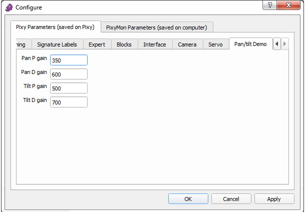 Pan/Tilt Demo 탭에 가보면 파라미터를 조정할 수 있습니다.