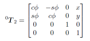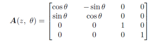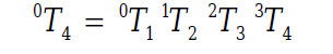 4자유도 매니퓰레이터 변환 행렬은 다음과 같이 표현되었습니다.