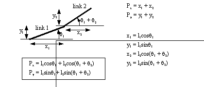 이는 2관절 매니퓰레이터 계산에 필요한 다음 그림들을 보면 이해하기 쉽습니다.(Geometric approach)
