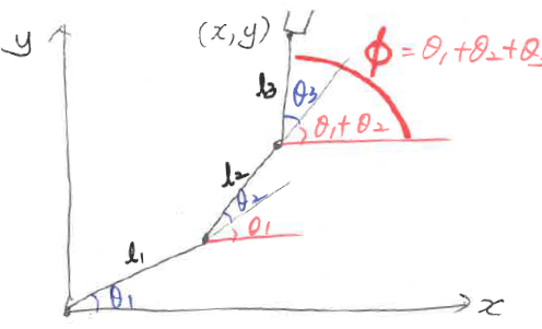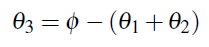 주목할 것은, ϕ는 x(혹은 ground)축과 end effector사이의 각도라는 점입니다.