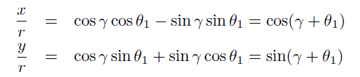 위의 식과 그림으로부터, 끝의 x좌표와 y좌표는 다음과 같이 표현 됩니다.