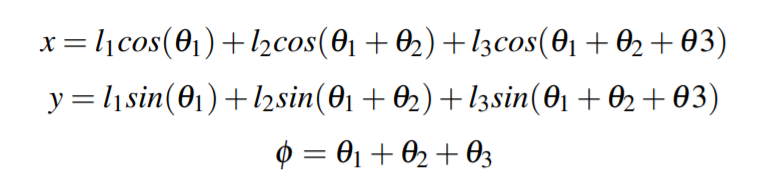 위와같은 3DOF 매니퓰레이터의 Forward Kinematics 식: