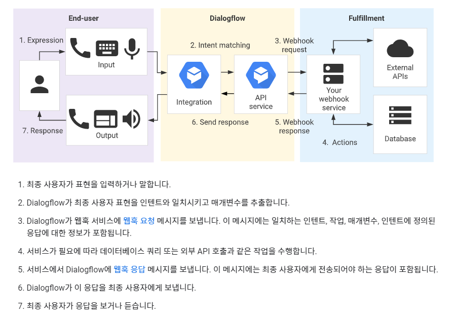 Dialogflow는 자연어를 해석하고, 처리하여 질문에 대한 대화 환경을 제공합니다.