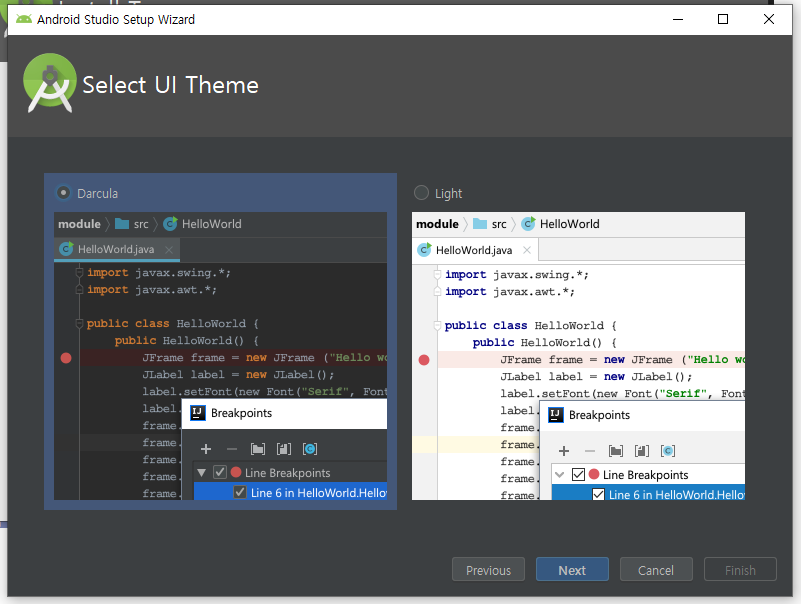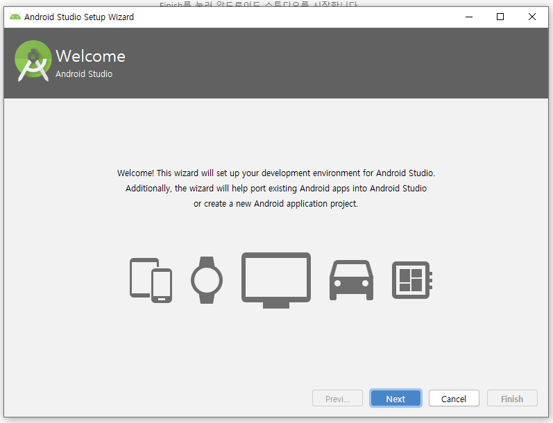 안드로이드 스튜디오가 시작되었습니다. Next 클릭