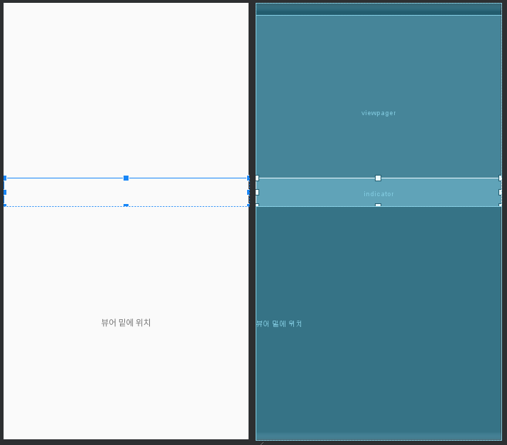 인디케이터도 FrameLayout에 넣어 ViewPager 위에 띄우도록 하였습니다.