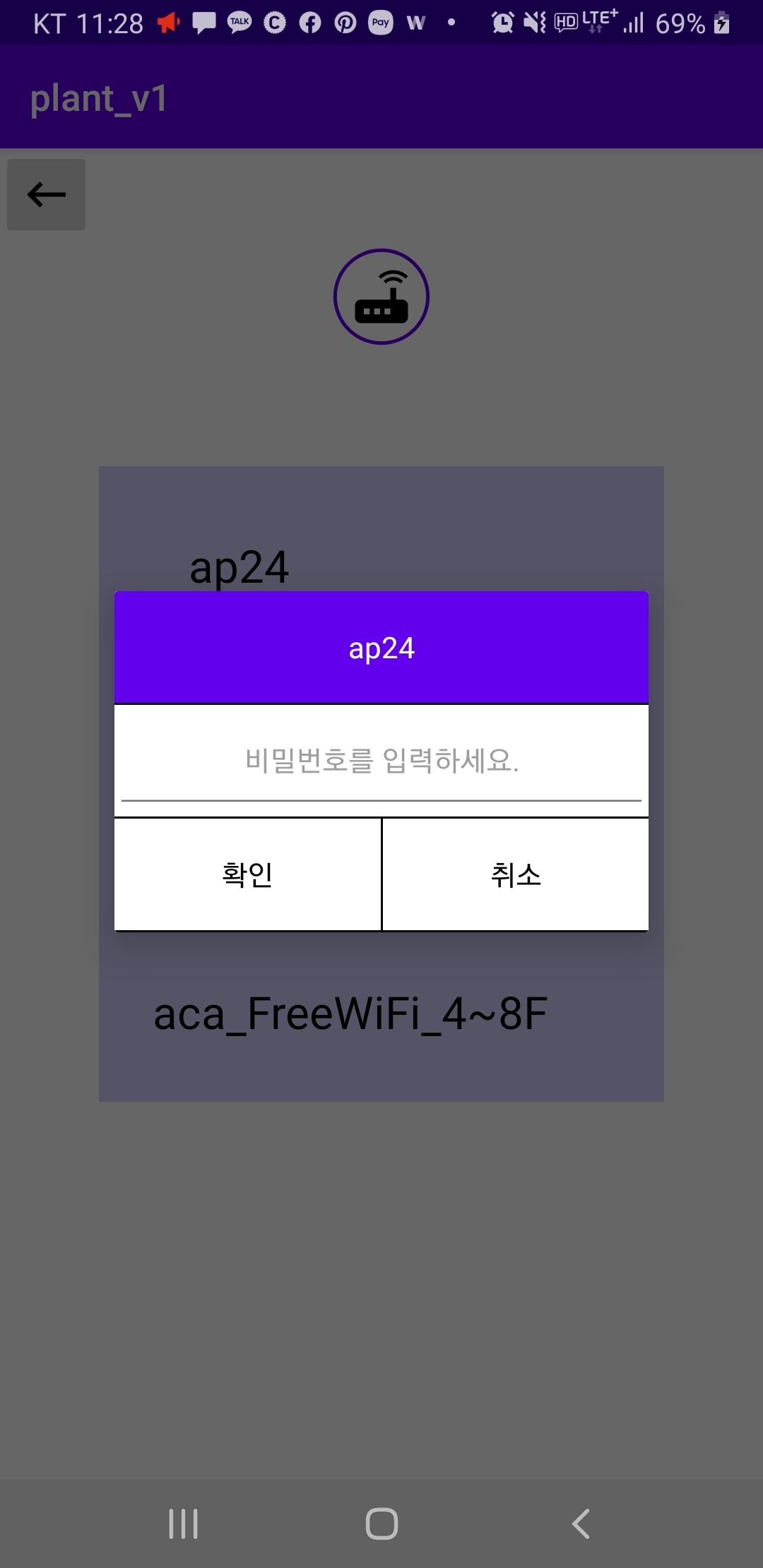 - 리스트중 ssid 하나를 선택하면, 비밀번호를 입력하는 dialog가 나온다. Custom Dialog 구현